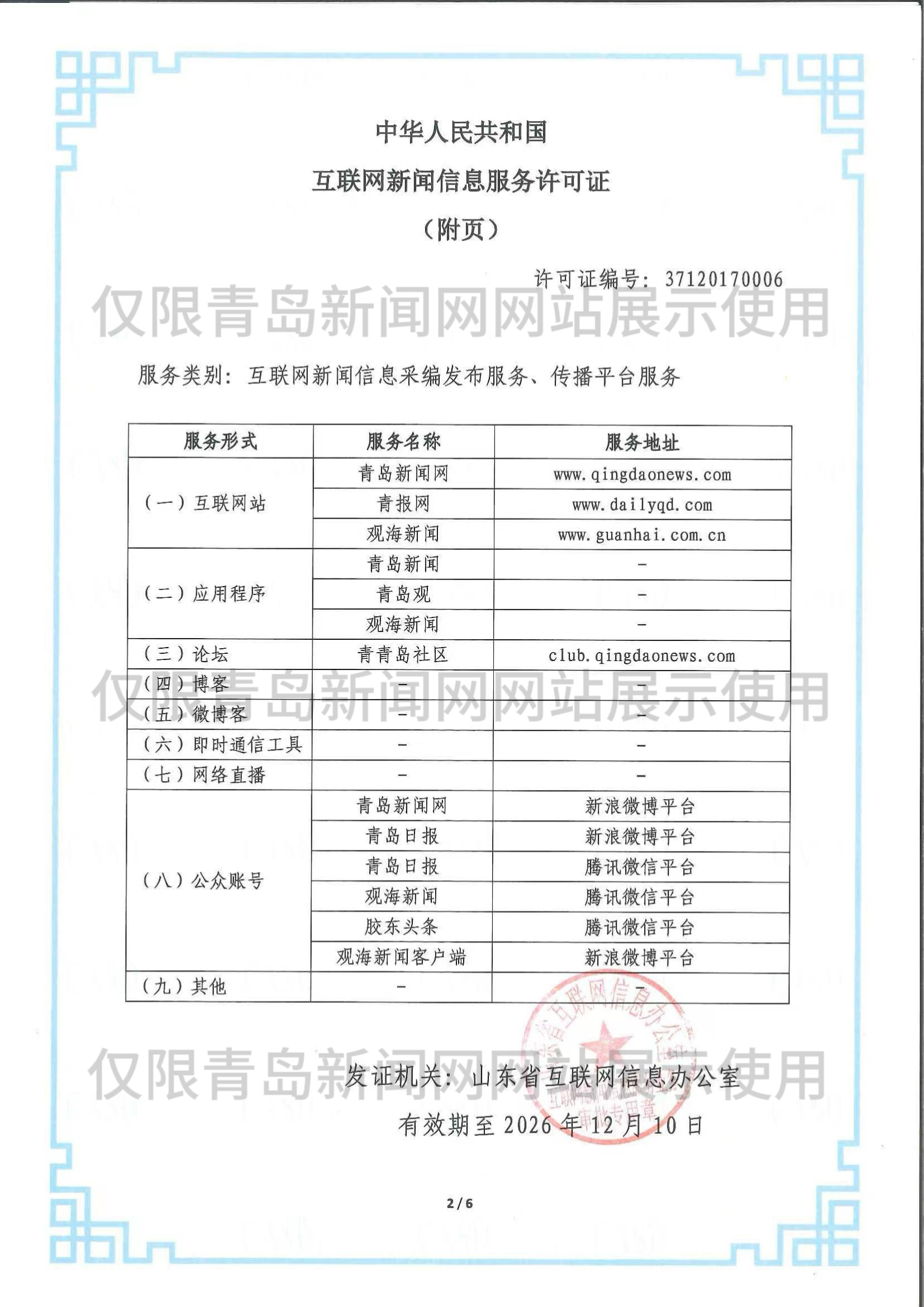 為確保在國際互聯網上所發布青島新聞信息的正確政治方向,便于網上新聞發布的把關,青島新聞網絡傳播有限公司是青島日報報業集團各報(刊)及其網絡版在國際互聯網上進行信息交換、交流的代表和制作、發布人,全權負責青島日報報業集團各報(刊)及其網絡版的對外信息交換、交流業務。