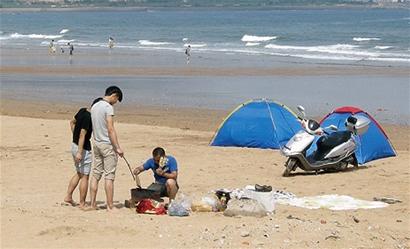 ????一個(gè)小時(shí)里,記者聯(lián)系了三個(gè)部門,對(duì)方都有難處。沙灘上前來(lái)游玩的游客越來(lái)越多,不少人忙著燒烤,油煙在海風(fēng)中飄蕩,嶗山這處清潔的沙灘一下子變成了熱鬧的燒烤街…… (本報(bào)記者 攝影報(bào)道)