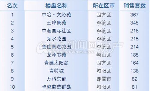 從青島市各區(qū)域新房成交情況來看,保障房“叱咤風(fēng)云”,直接導(dǎo)致李滄、四方、城陽成為全市成交量 “三巨頭”,郊區(qū)五市則以“穩(wěn)”字當(dāng)頭。上周銷量排行榜的前十名中,前八名均被保障房項目占據(jù),大部分項目分布在李滄、四方、城陽,這導(dǎo)致了青島市區(qū)樓市“升溫”。