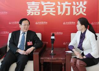 兩會期間,市南區區委書記王久軍(左)接受本網記者專訪
