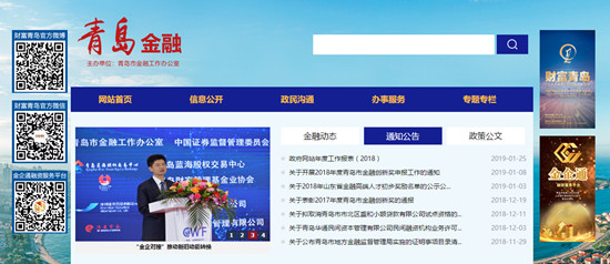 青島市地方金融監督管理局(青島市金融工作辦公室)官方網站界面。
