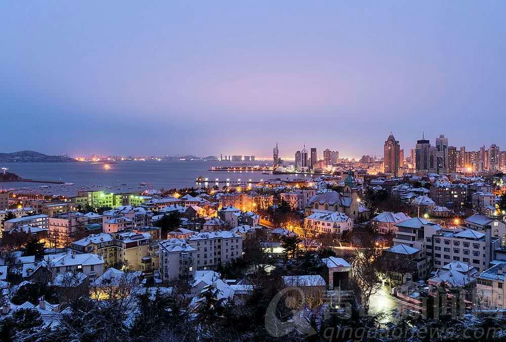 彩燈霓虹扮靚節日青島。(于少月攝)