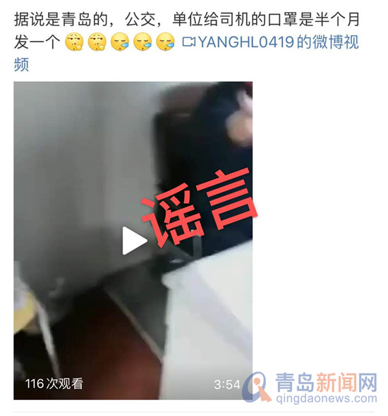 網傳青島一線公交駕駛員一個口罩戴14天?官方辟謠