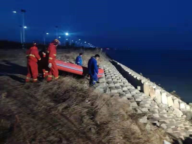 16:25,第一梯隊到達指定位置了解現場情況后,迅速派出兩名隊員駕駛沖鋒舟攜帶裝備前往出事海域進行搜救。隨后,第二梯隊人員駕駛摩托艇、沖鋒舟前往出事海域進行增援。