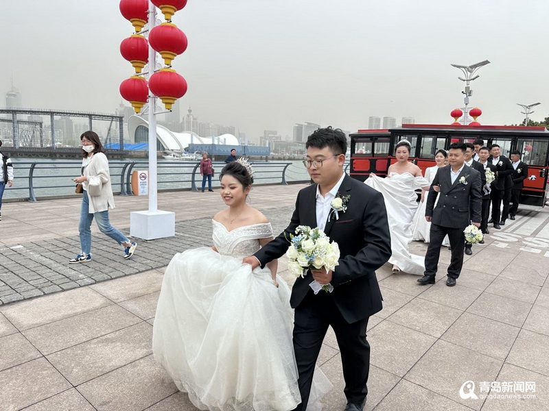 8對新人在青島復古鐺鐺車中一起巡游青島最美景色,向這座承載著無數(shù)建筑人青春的城市表達最深沉的敬意,也讓這座城市刻印下人生中最美好的回憶。潔白的婚紗、甜蜜的笑靨使整個車隊成為歡樂的海洋,歡笑聲、快門聲交織匯聚,譜寫著愛的進行曲,有海有山有愛與自由,有你與溫柔,偶遇巡游的路人們也紛紛駐足揮手,為新人們送上一份真摯的祝福。