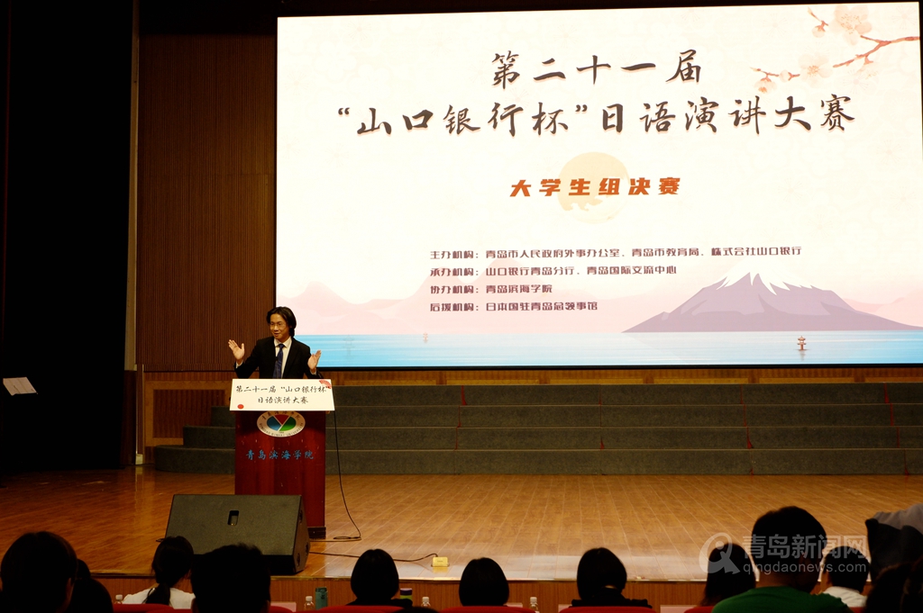 本屆日語(yǔ)演講大賽由青島市人民政府外事辦公室、青島市教育局、日本國(guó)山口銀行株式會(huì)社主辦,山口銀行青島分行和青島國(guó)際交流中心共同承辦,青島濱海學(xué)院協(xié)辦,日本國(guó)駐青島總領(lǐng)事館為后援。比賽評(píng)委由來(lái)自山口銀行青島分行代表、青島日本人學(xué)校代表及部分駐青高校日語(yǔ)系教師擔(dān)任。
