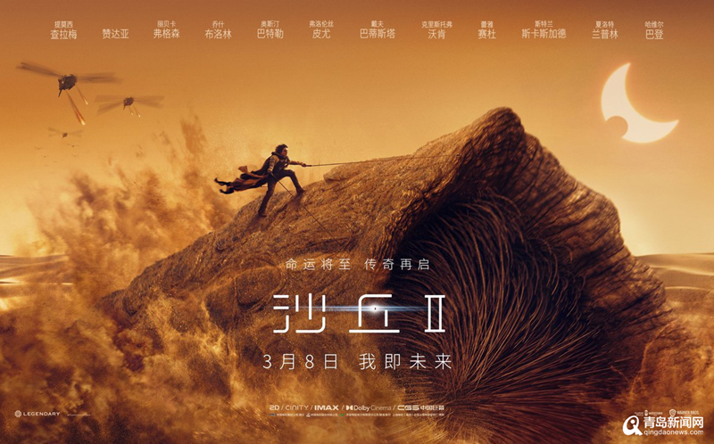 青島新聞網(wǎng)3月10日訊(記者 張力偉)根據(jù)弗蘭克·赫伯特著名科幻小說(shuō)改編,由美國(guó)傳奇影業(yè)和美國(guó)華納兄弟影片公司攜手打造的好萊塢科幻巨制《沙丘2》正在青島萬(wàn)達(dá)影城熱映中,頂級(jí)工業(yè)大片的沉浸震撼視聽,收獲觀眾好評(píng)無(wú)數(shù),年度大銀幕狂歡不容錯(cuò)過(guò)!