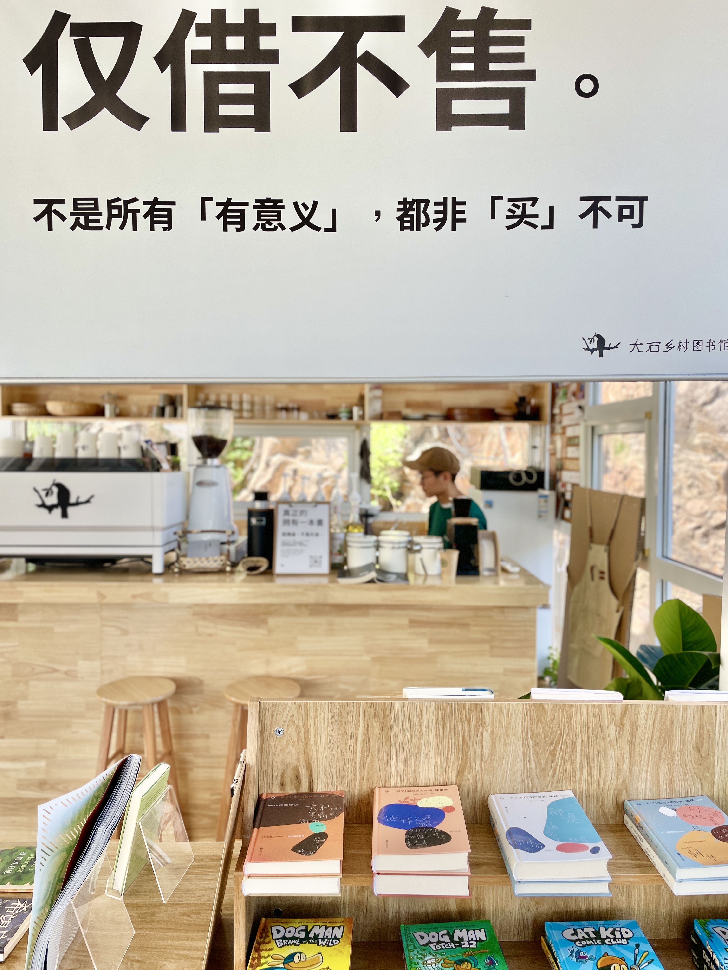 在遠(yuǎn)離城市喧囂的嶗山風(fēng)景區(qū)南九水大石頭村,藏著一個(gè)別具一格的閱讀空間——大石鄉(xiāng)村圖書館。是圖書館,也是咖啡館,二樓是圖書館+咖啡,一樓有單獨(dú)的茶室和閱讀室。書籍僅供借閱不作售賣,正如大石鄉(xiāng)村圖書館對(duì)讀書的定義:“真正的擁有一本書,是讀過,不是買過。”