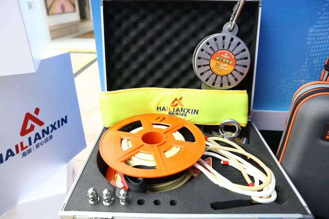 活動當天,海麗雅集團攜最新研發的繩索救援技術裝備及多款安全應急產品精彩亮相,吸引了眾多市民與業內人士的關注。在青島金花品牌體驗展區,集團展示了“天問一號”彈性繩索、航天垂掛吊索、纖維臍帶纜等高科技特種繩纜裝備以及安心手電、滅火圍裙、應急包、過濾式消防自救呼吸器等應急產品,充分展現了海麗雅集團的品牌實力和產品創新能力。其中,與清華大學聯合研制的高層樓宇逃生緩降器成為現場關注的焦點產品,它被稱作是高層建筑火災逃生的第二通道,受到越來越多人的關注。