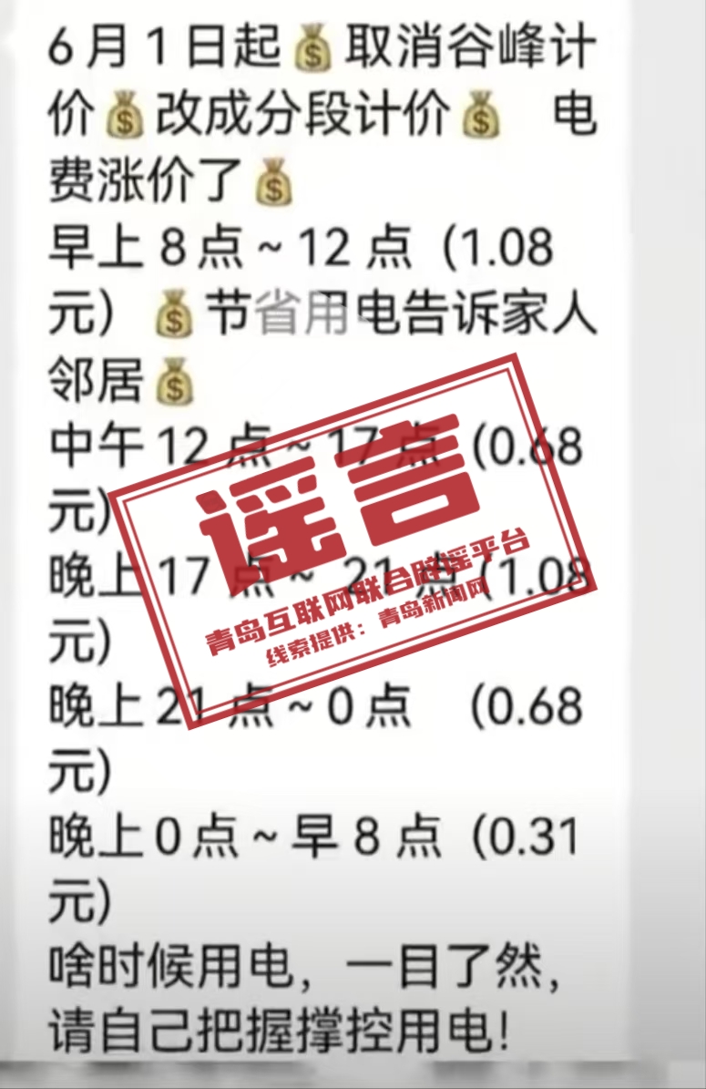 事實上,這并非孤例。此前,湖北、四川、江蘇等地也曾傳出類似謠言,宣稱“居民用電將取消谷峰計價,改為分段計價”,最終均被當地官方辟謠。