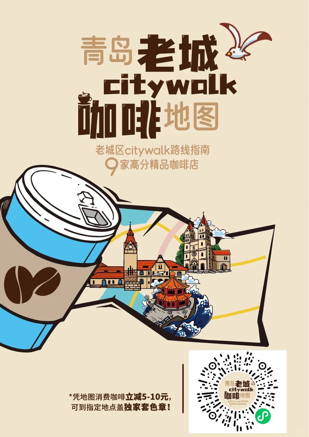 青島老城citywalk咖啡地圖,售價19.9,9家高分精品咖啡店,憑地圖消費咖啡享優惠(洛川家咖啡 憑地圖可立減10元),“在青島”粉絲,買地圖送徽章活動中,還等什么呢?沖!沖!沖!