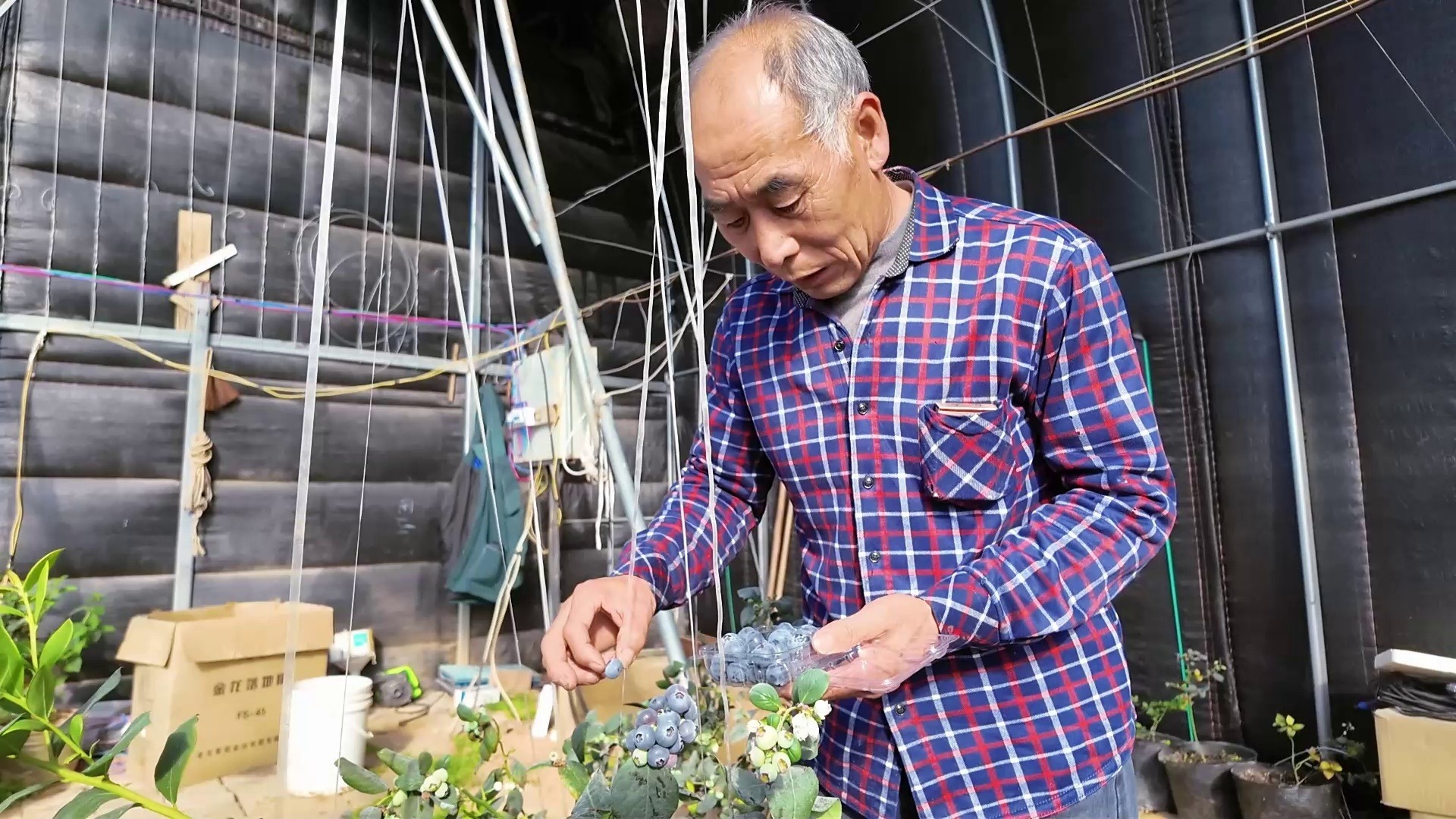 青島膠州市洋河鎮(zhèn):盆栽藍(lán)莓“搶鮮”上市