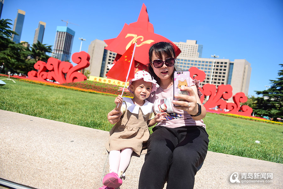 高清:國旗飄揚(yáng)花團(tuán)錦簇 青島街頭換上國慶靚裝